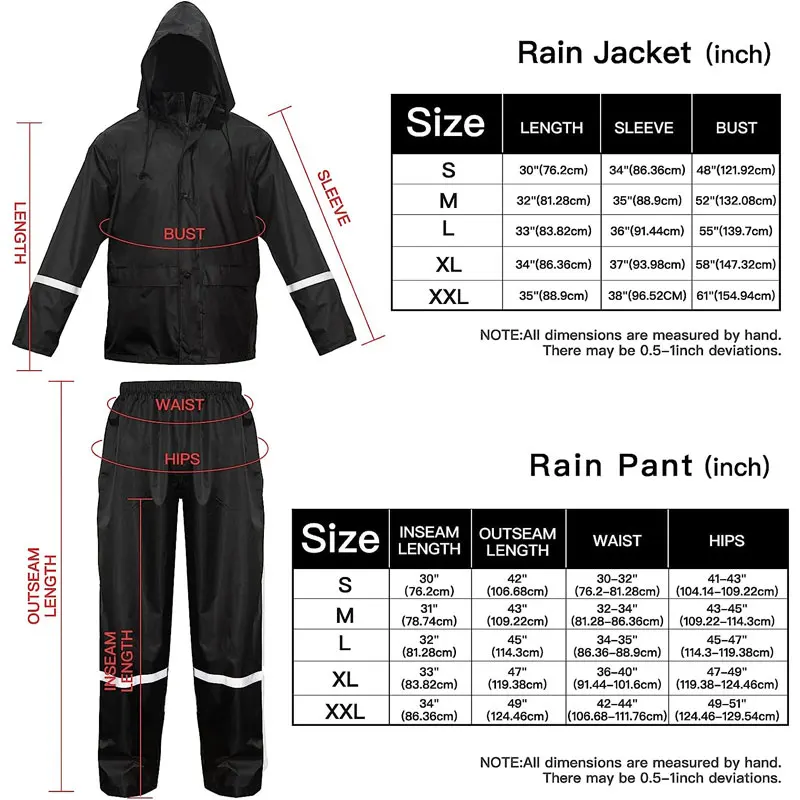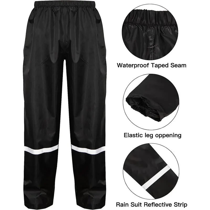 Black Raincoat with Reflective Strips Waterproof Rainwear Set for Men
