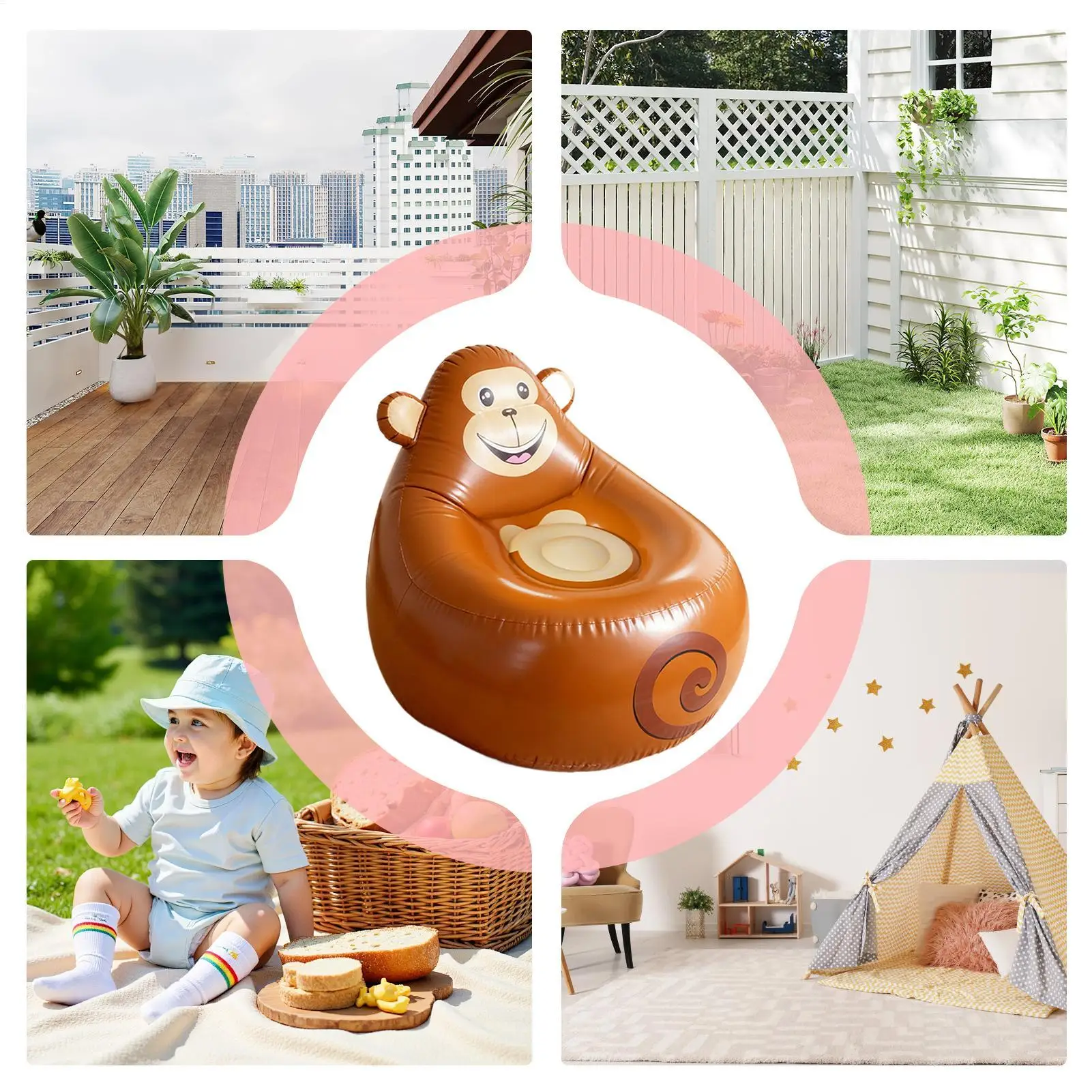 • Inflatable animal-shaped couch for kids.