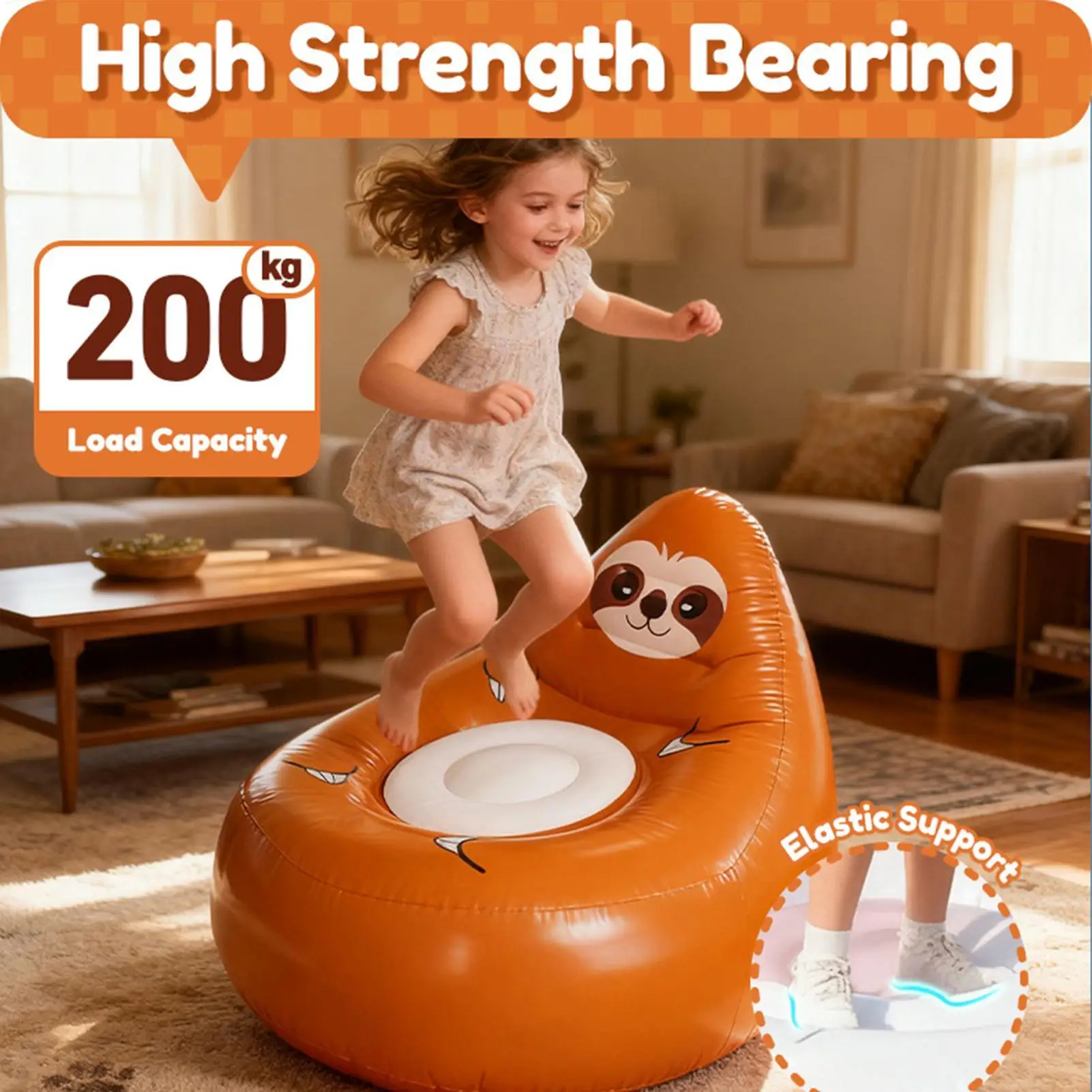 The inflatable animal-shaped couch is a fun and portable seating option designed specifically for kids. Its playful design makes it an attractive addition to any indoor or outdoor space, perfect for camping, beach outings, or simply relaxing in the backyard. Lightweight and easy to carry, this couch provides comfort and enjoyment for children during various activities.