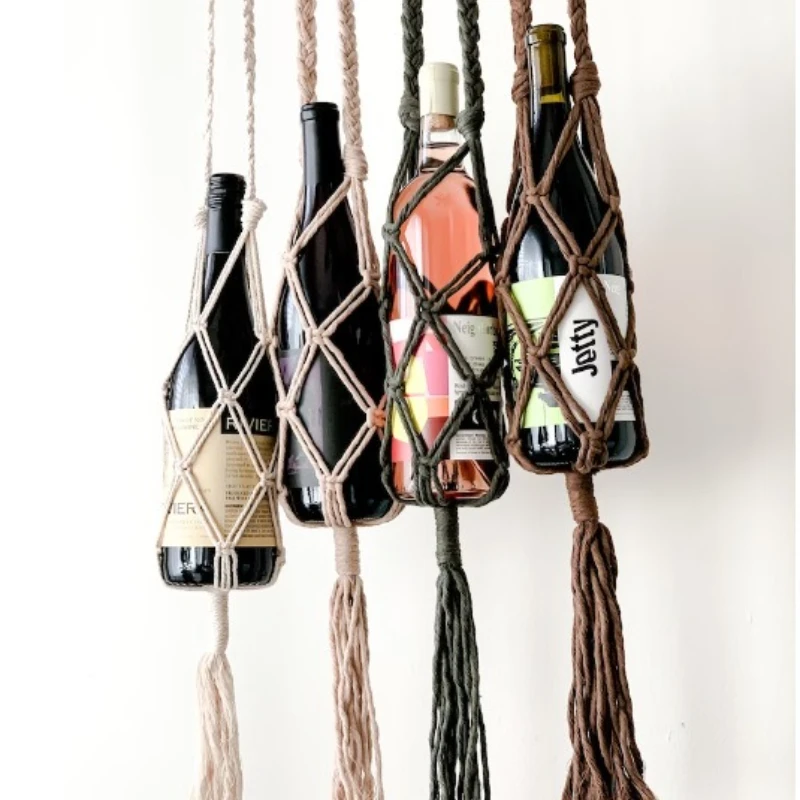 Bohemian Red Wine Hanging Bag Hand-woven Wine Storage Bag Boho Wine Holder