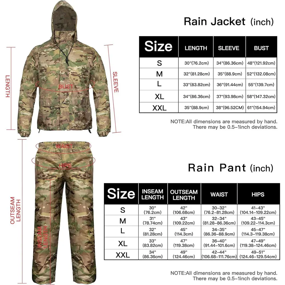 Camouflage Folding Raincoat Set Portable Travel Rain Suit Military Poncho Waterproof