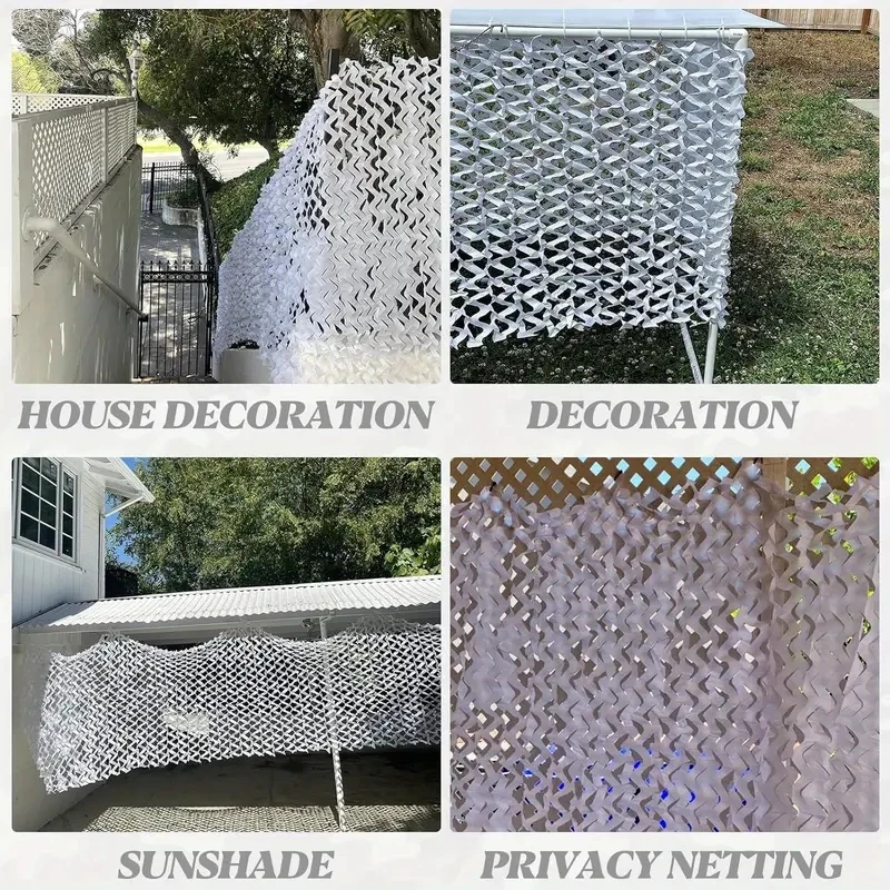 This camouflage net is designed for various outdoor activities such as camping, hiking, and garden decoration. It provides effective concealment and is suitable for a range of environments including forests and deserts.