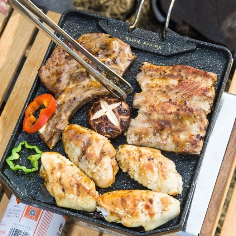 This portable camping cooking pan is designed for outdoor enthusiasts who enjoy cooking while hiking, picnicking, or grilling. Its non-stick surface makes it easy to clean, and its foldable design allows for convenient storage and transport.