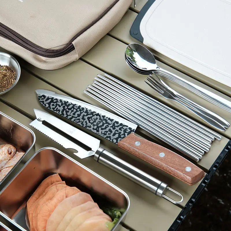 This Camping Cookware Set is designed for outdoor enthusiasts who enjoy picnics and travel. It comes with a convenient storage bag, making it easy to carry and organize your cooking tools. The set is perfect for preparing meals while camping or enjoying a day out in nature.