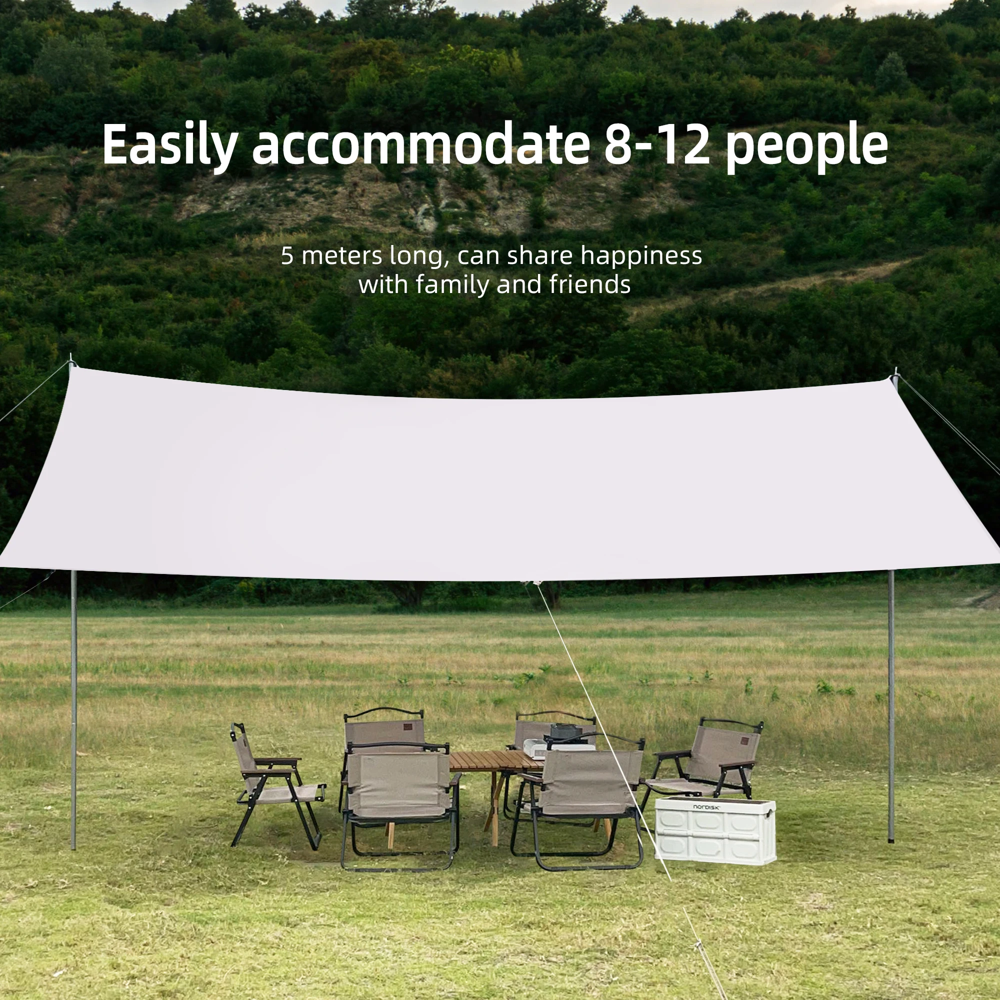 This portable camping tarp is designed for outdoor enthusiasts seeking a reliable sun shade and rain shelter. With its windproof design and UPF50+ protection, it provides a comfortable space for relaxation at the beach or during camping trips.