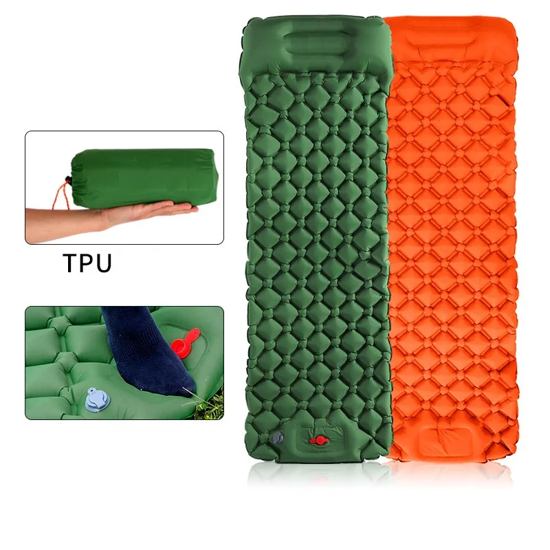 Camping Sleeping Pad Ultralight Inflatable Mat with Built-in Pump and Pillow