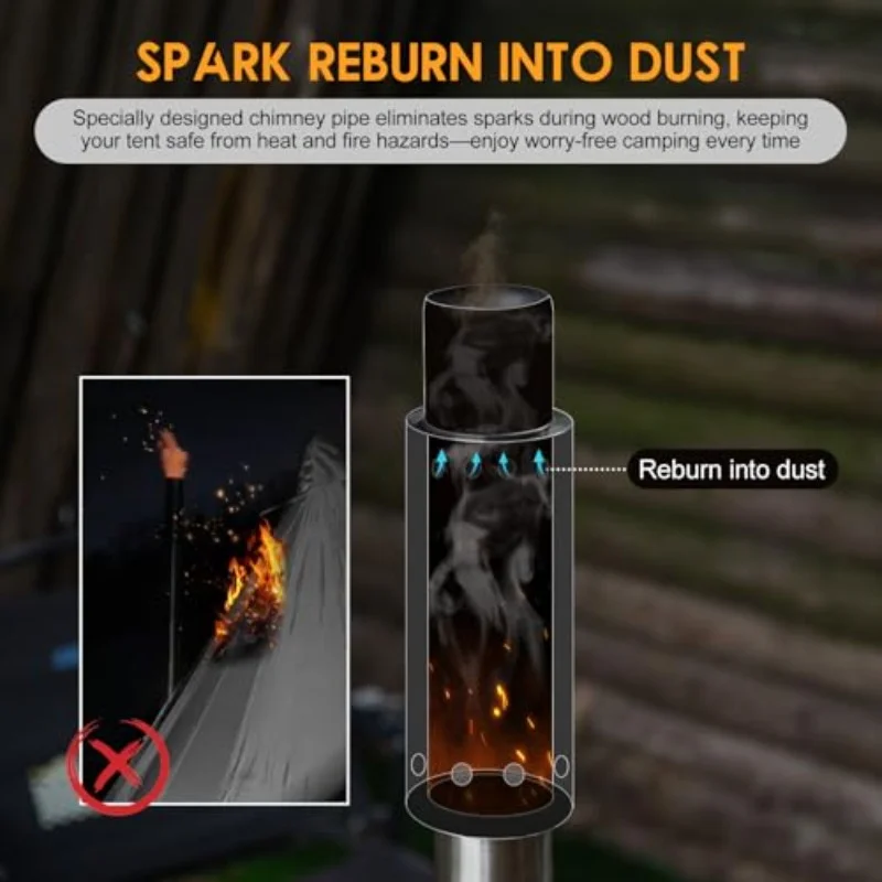 Secondary Burning Tent Stove Chimney Pipe 21755mm Diameter Universal Camping Stove Accessories