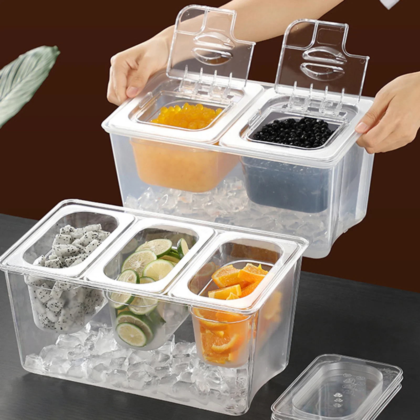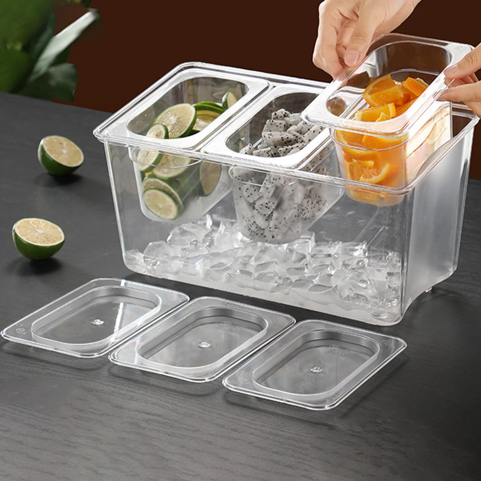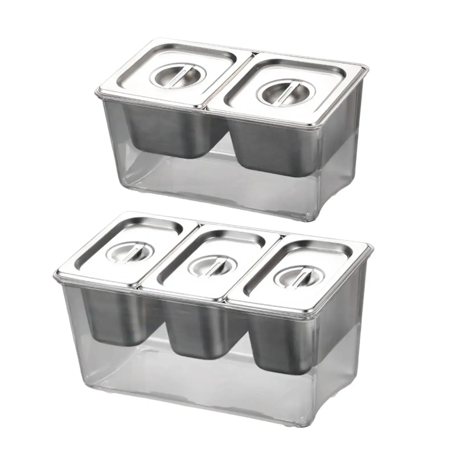 Chilled Condiment Server Tray with Lid Multi Compartments Food Storage Container