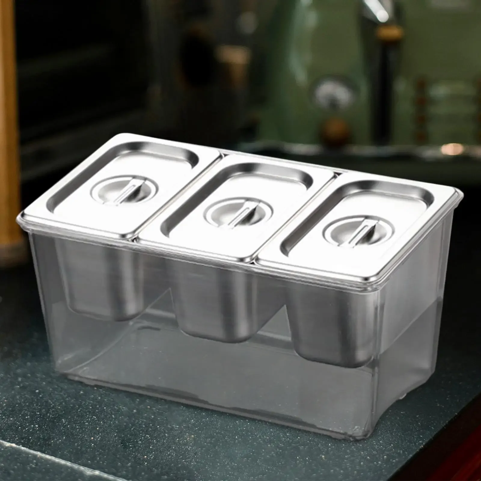 • Multi-compartment design for organized storage of condiments.