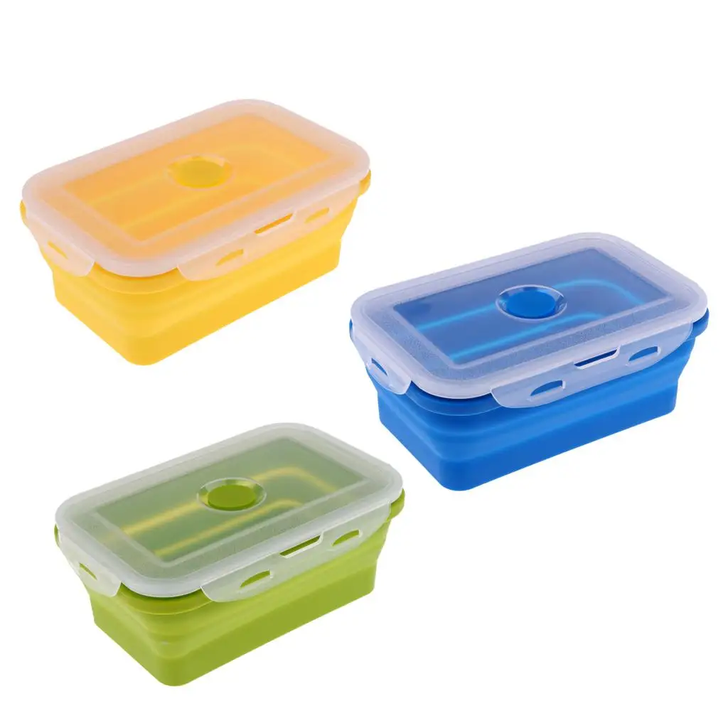 Collapsible Lunch Bento Box Silicone Food Storage Container Microwave Freezer Safe