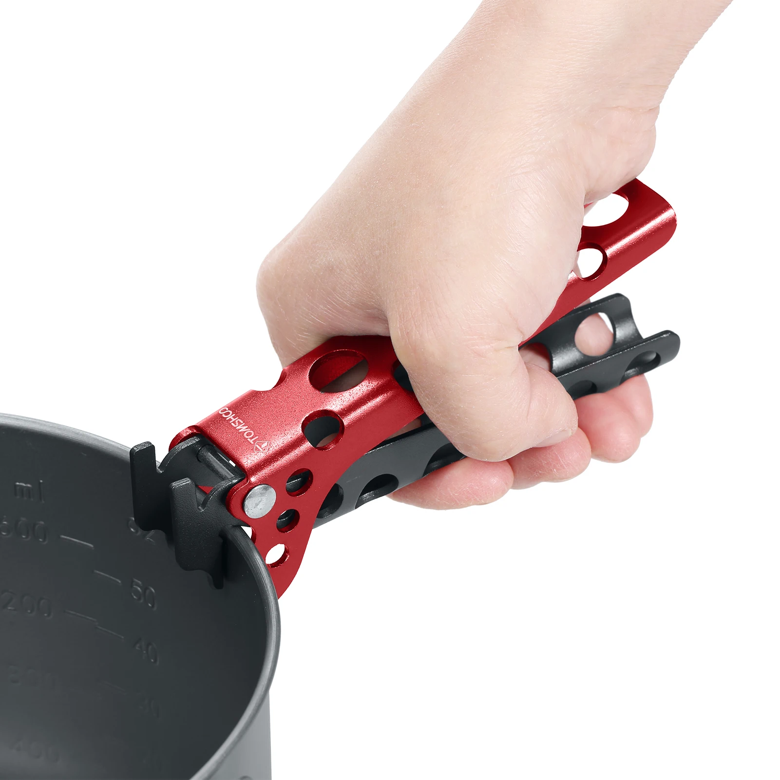 This aluminum pot lifter is a practical tool designed for outdoor cooking. It allows you to safely lift hot pots and pans, protecting your hands from heat while ensuring a secure grip.