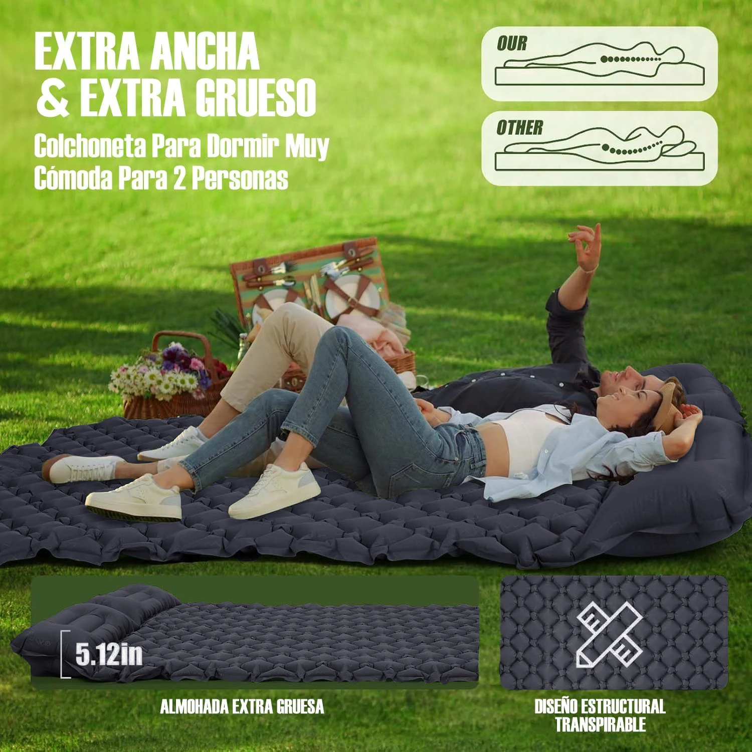 The Double Person Diamond Inflatable Mattress is designed for outdoor enthusiasts who enjoy camping and hiking. This mattress provides a comfortable sleeping solution for two people, making it perfect for couples or friends on their adventures.