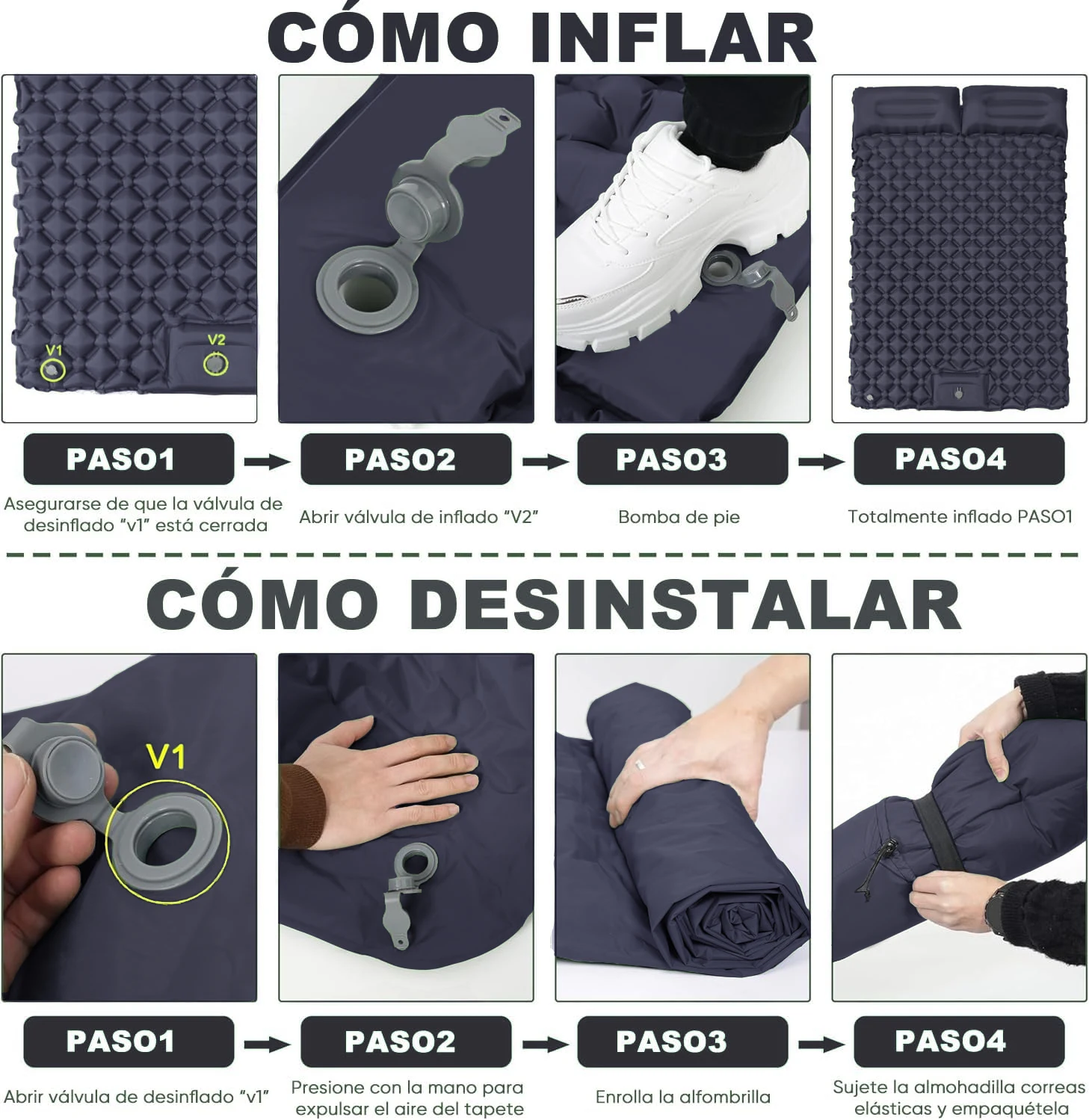 - Foot-Operated Inflation: Features a built-in inflator pump for easy inflation using your foot, allowing for quick setup.
