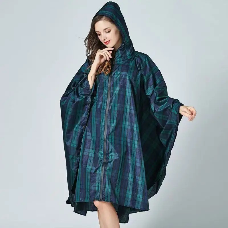 Fashion Women Breathable Raincoat Lightweight Waterproof Green Lattice Cloak