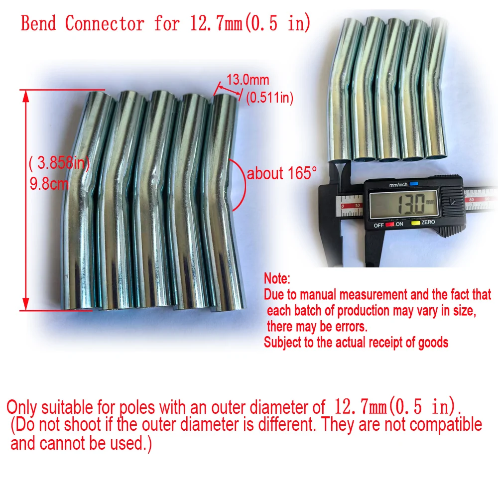 - Bend Connector for 12.7mm fiberglass poles, angle is about 165°