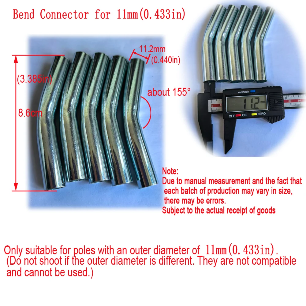 - Bend Connector for 11mm fiberglass poles, angle is about 155°