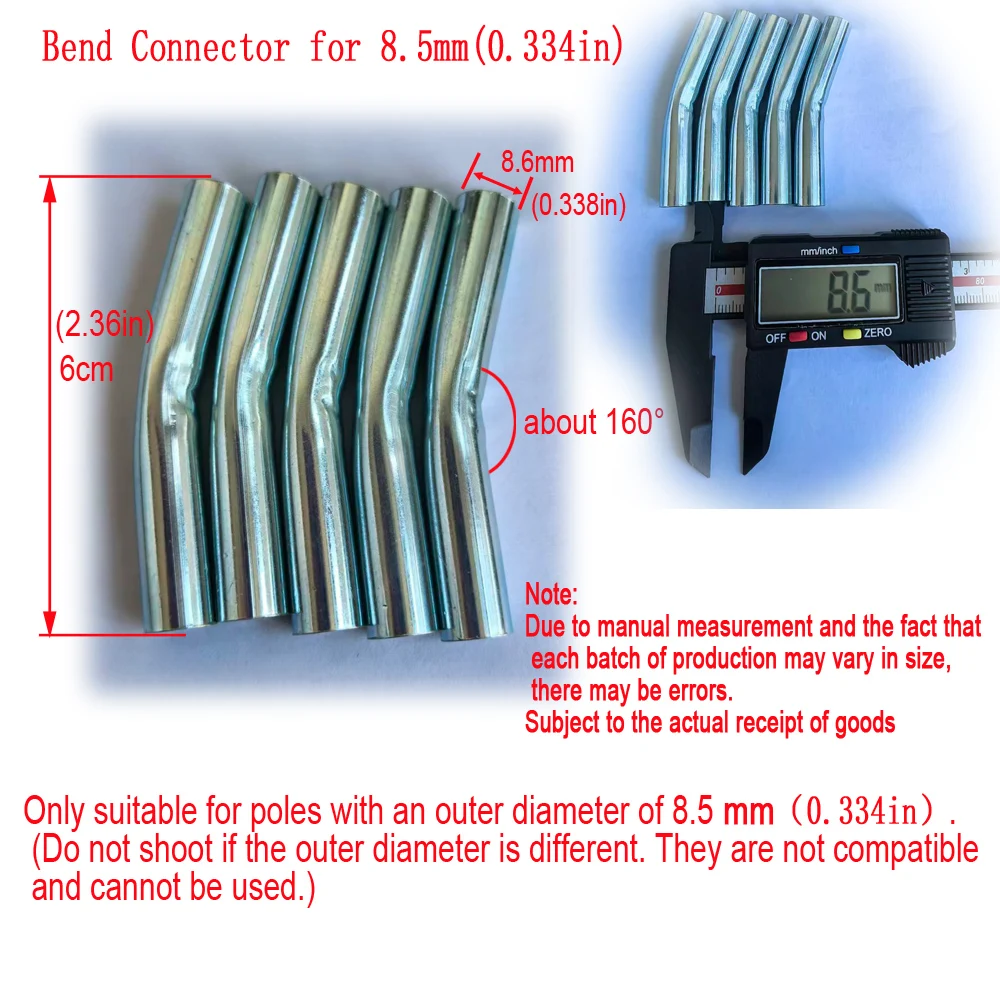 - Bend Connector for 8.5mm fiberglass poles, angle is about 160°