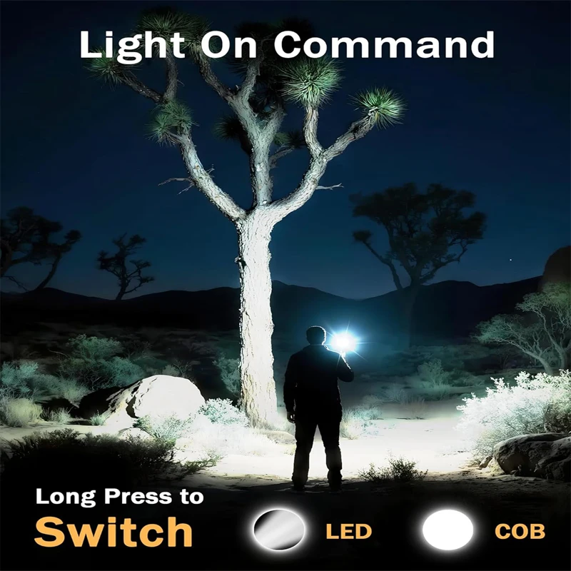 This mini flashlight is designed for versatility and convenience, making it an essential tool for camping, hiking, and emergency situations. With its powerful COB and LED light sources, it offers multiple lighting modes and a compact design that is easy to carry.