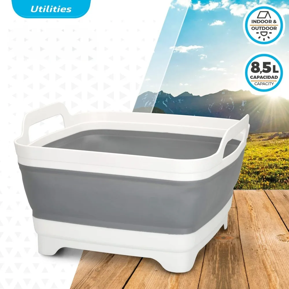 Foldable Camping Sink TPR Plastic Rubber Drain Plug 8.5 Liters Portable Basin