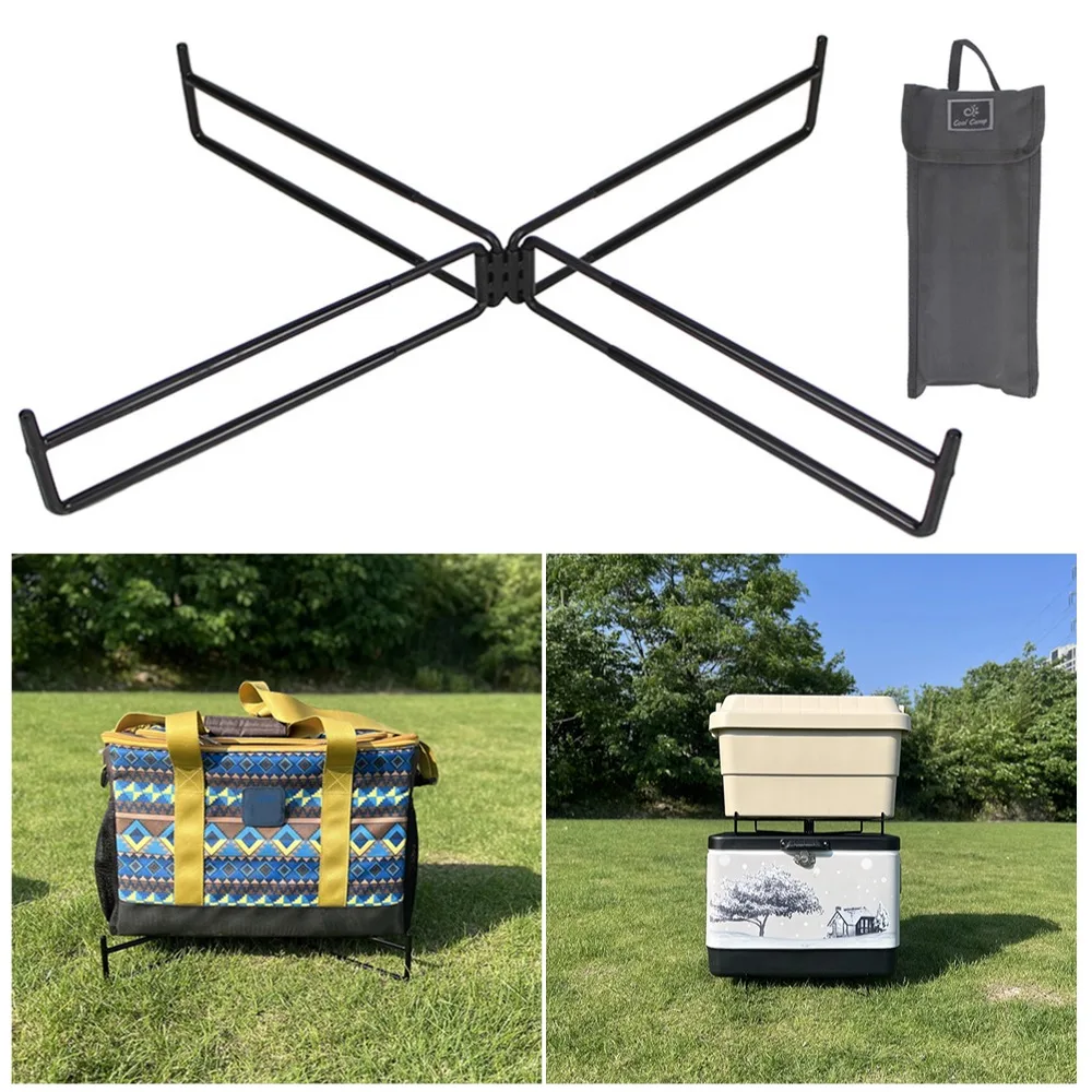 This foldable metal stand is a versatile solution for outdoor activities, serving as a cooler box stand, portable storage bin, and more. It is designed to enhance your camping, hiking, and travel experiences by providing a reliable and organized way to manage your outdoor essentials.