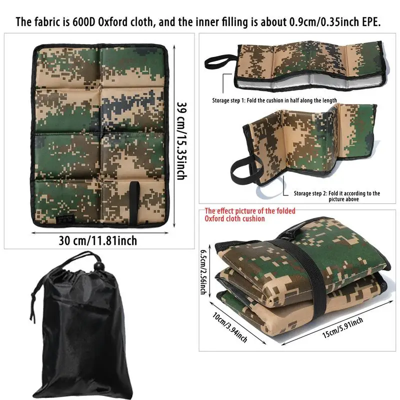 This folding cushion is designed for outdoor activities such as camping and hiking. It is moisture-proof and provides a comfortable seating experience while preventing dirt from getting on your clothes. The cushion is lightweight and easy to carry, making it a practical choice for any outdoor enthusiast.