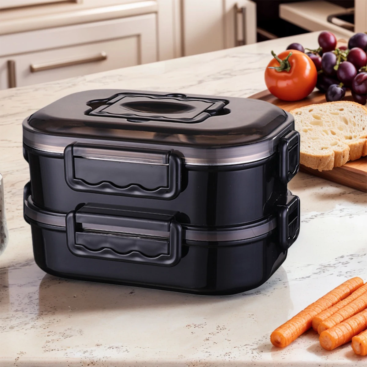 Food-Grade Black Double-Layer Insulated Lunch Box Food Container Leakproof Thermal Bento Box