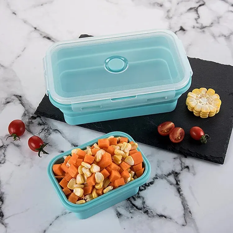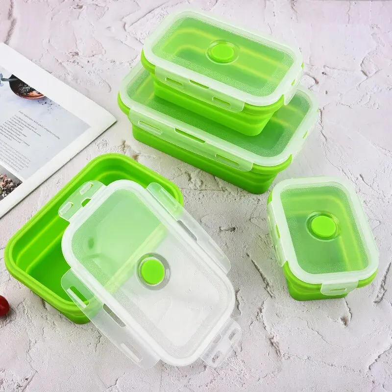 Food Grade Square Portable Foldable Silicone Lunch Box for Refrigerator Microwave