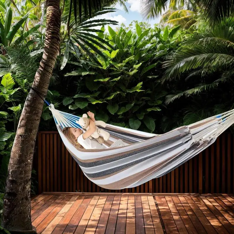 Hammocks For Outside Two-Person Tree Hammock Striped Tree Hammock Thickened Kids Camping Swing