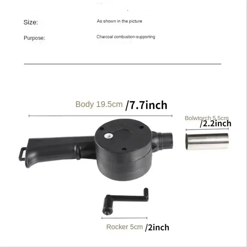 This hand crank air blower is a lightweight and efficient tool designed for starting fires in BBQ grills and outdoor cooking. Perfect for camping, picnics, and backyard barbecues, it provides a simple and effective way to enhance airflow and ignite your fire quickly.