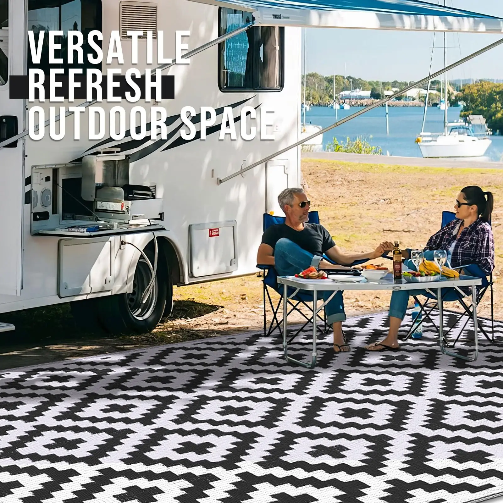 This HAPIHAPPY Outdoor Rug is designed for both indoor and outdoor use, making it a versatile addition to your home. Its waterproof and reversible features allow for easy maintenance and a fresh look whenever you need it. Perfect for patios, decks, and picnics, this rug combines style and functionality.