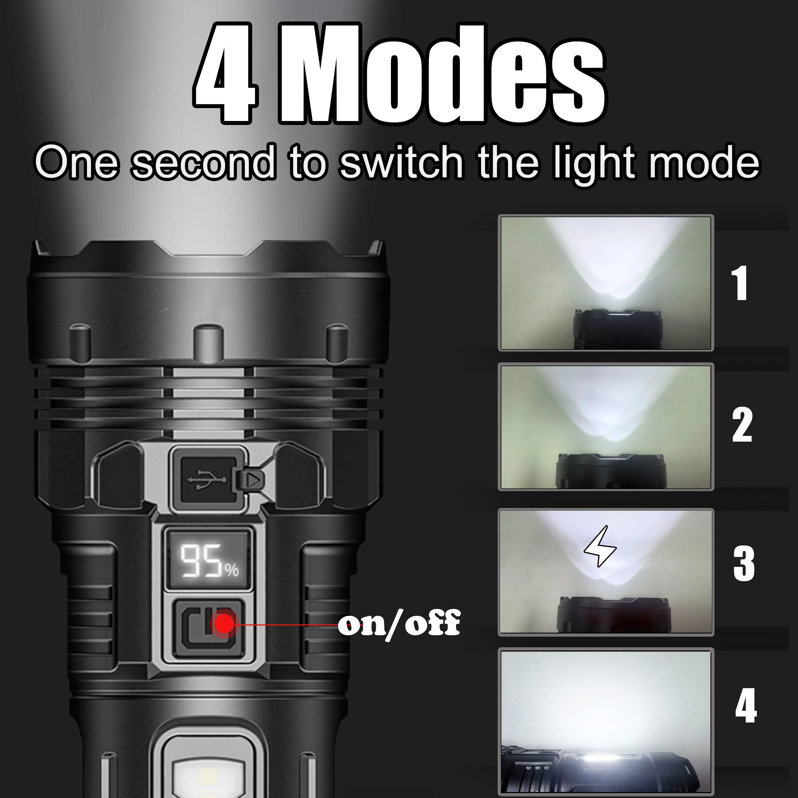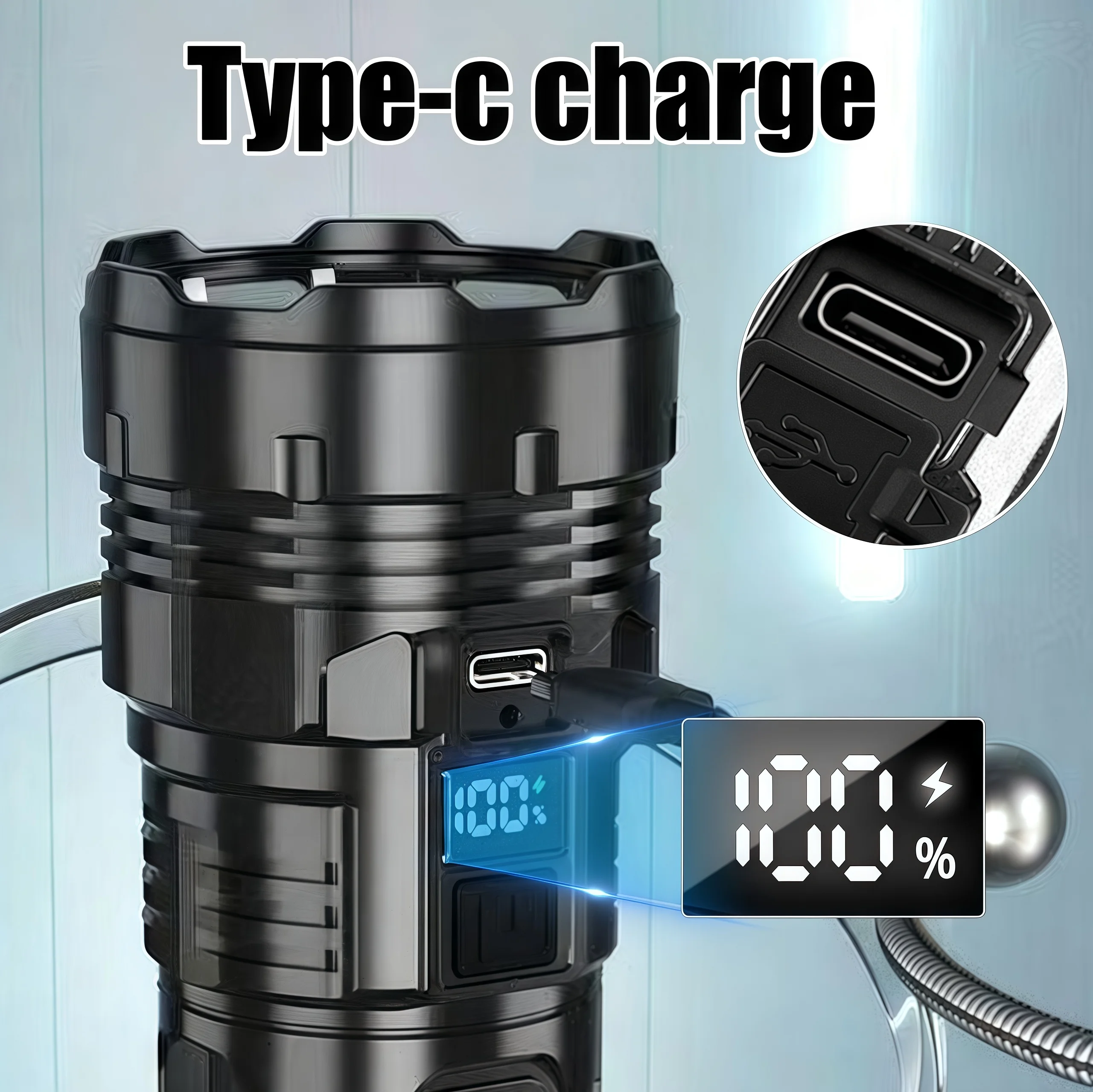 This high power LED flashlight is designed for outdoor enthusiasts, featuring a USB-C rechargeable design and a side light for versatile use. Perfect for hiking, camping, and emergency situations, this flashlight combines powerful illumination with user-friendly features.