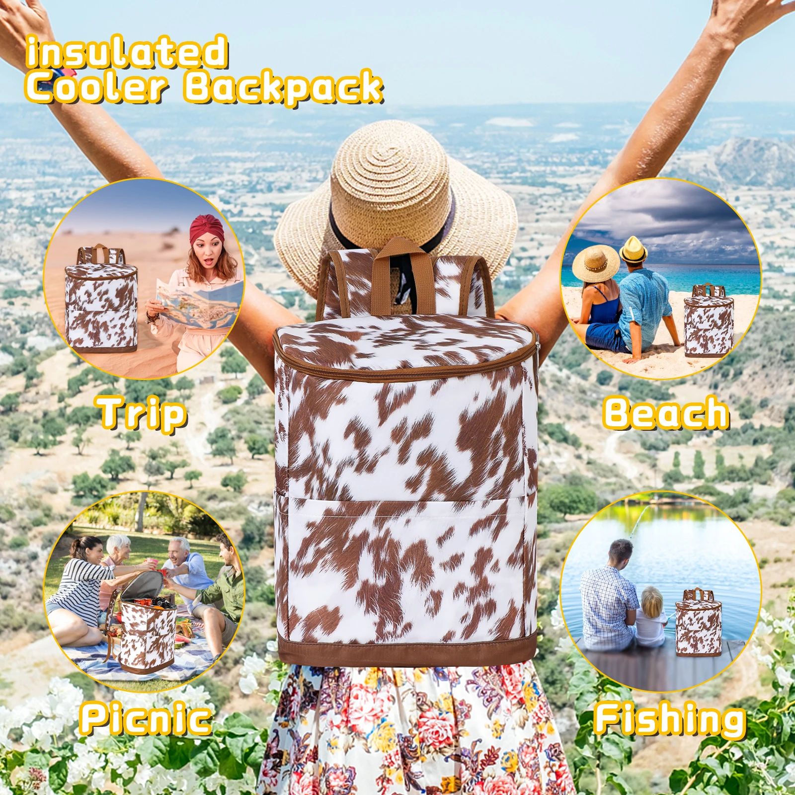 Insulated Cooler Backpack Large Nylon Leopard Waterproof Leakproof Portable Travel