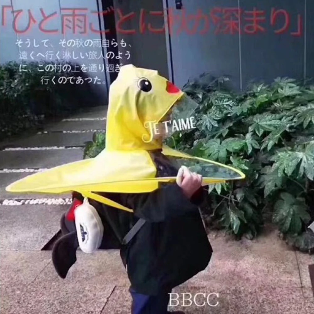 Kids Rain Cover Cute Cartoon Duck UFO Children’s Raincoat Umbrella Hat Poncho