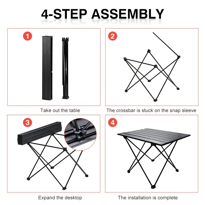 This portable outdoor camping table is designed for convenience and functionality. Its lightweight aluminum frame makes it easy to transport, while its modern minimalist style fits perfectly in any outdoor setting.