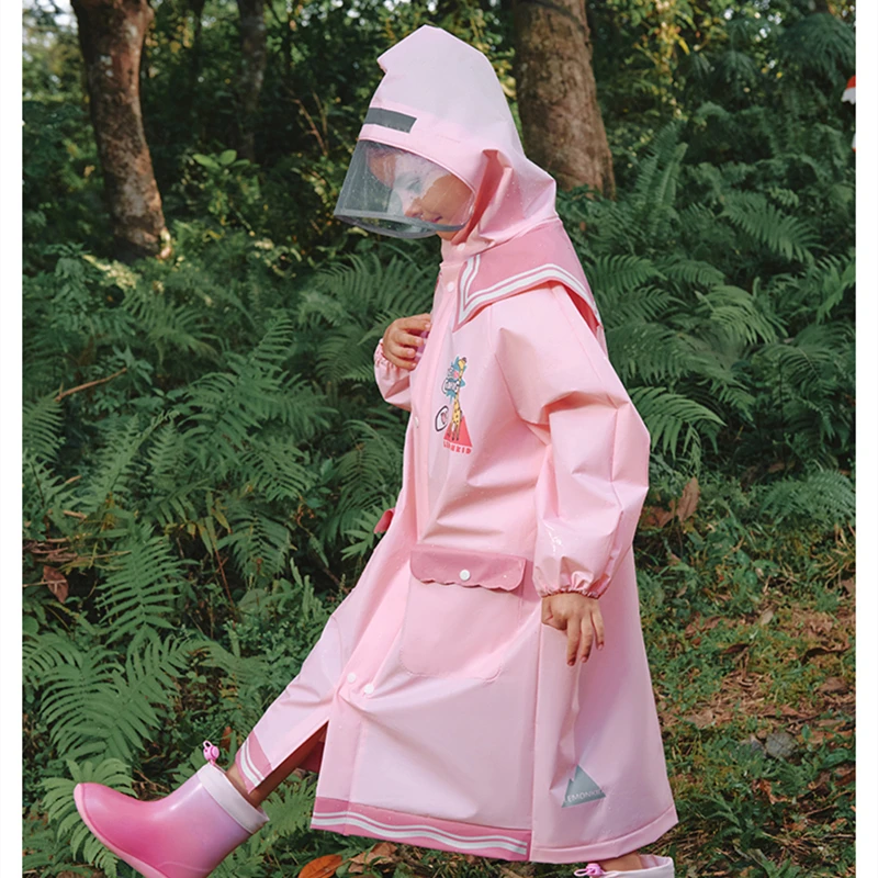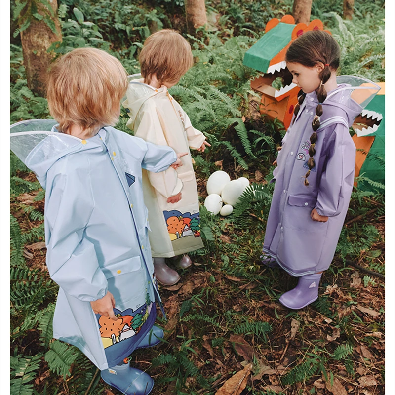 Korean Fashion Raincoat Kids Poncho Hooded Jacket for Outdoor Walking Cycling