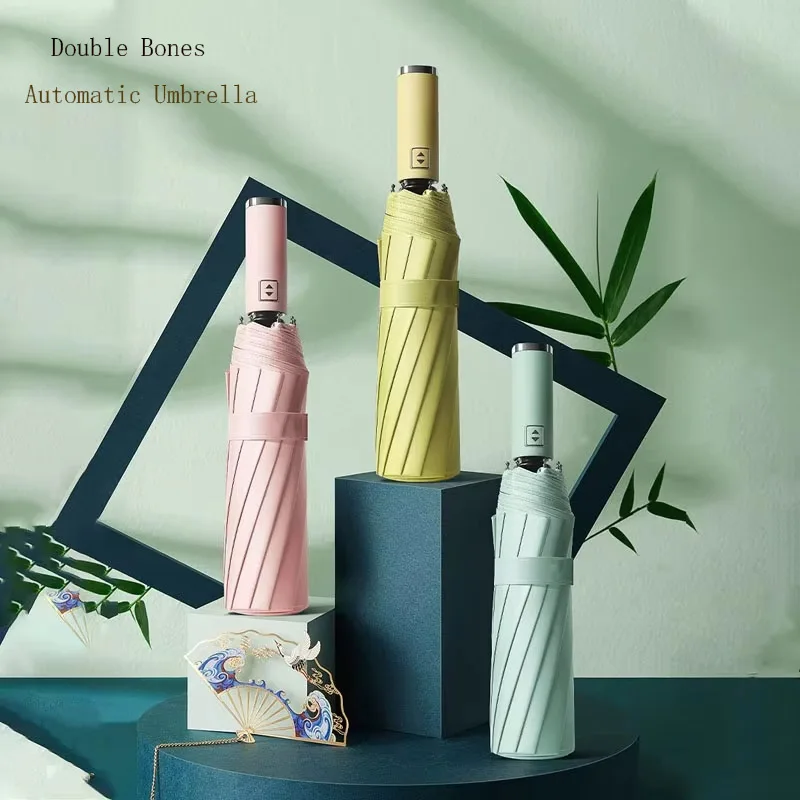 Large 10Ribs Double Bone 105cm Solid Color Automatic Umbrella Light Collapsible Large Format Outdoor Sunshade UV Protection