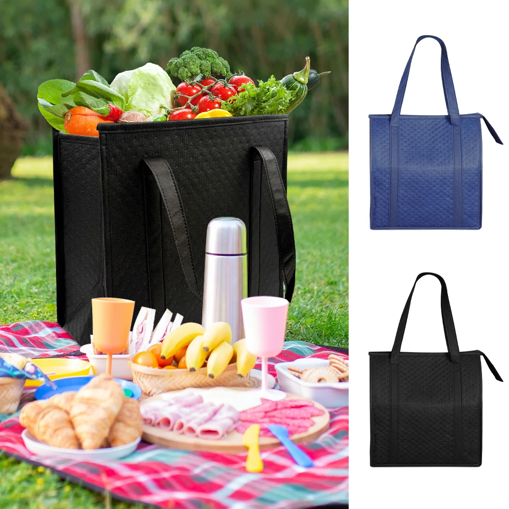 Large Insulated Reusable Grocery Bag with Zipper and Front Pocket for Camping Picnic Fishing Shopping