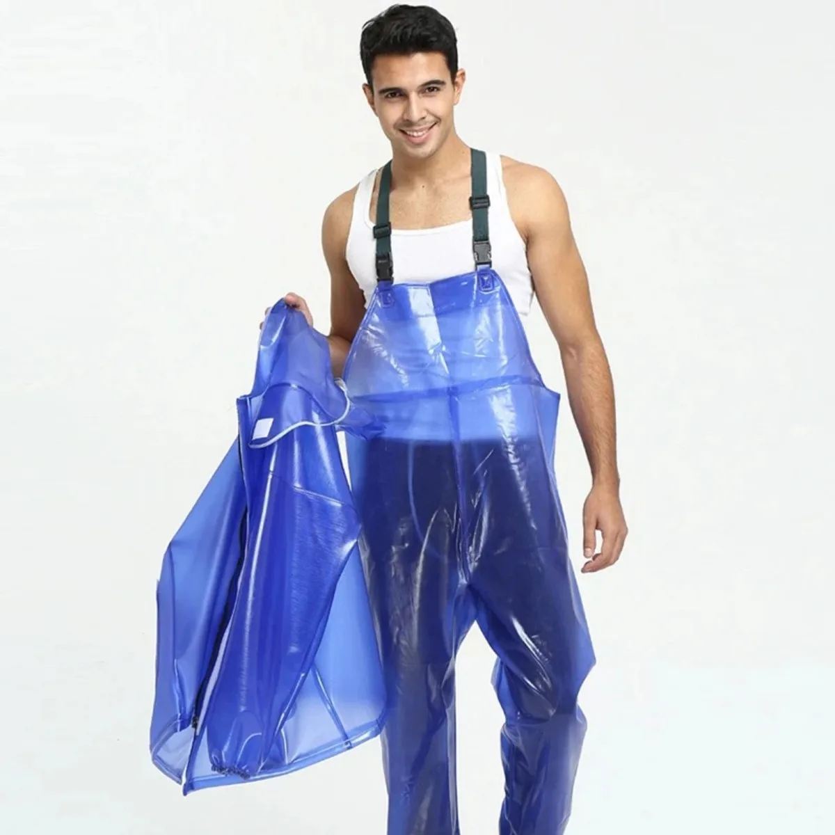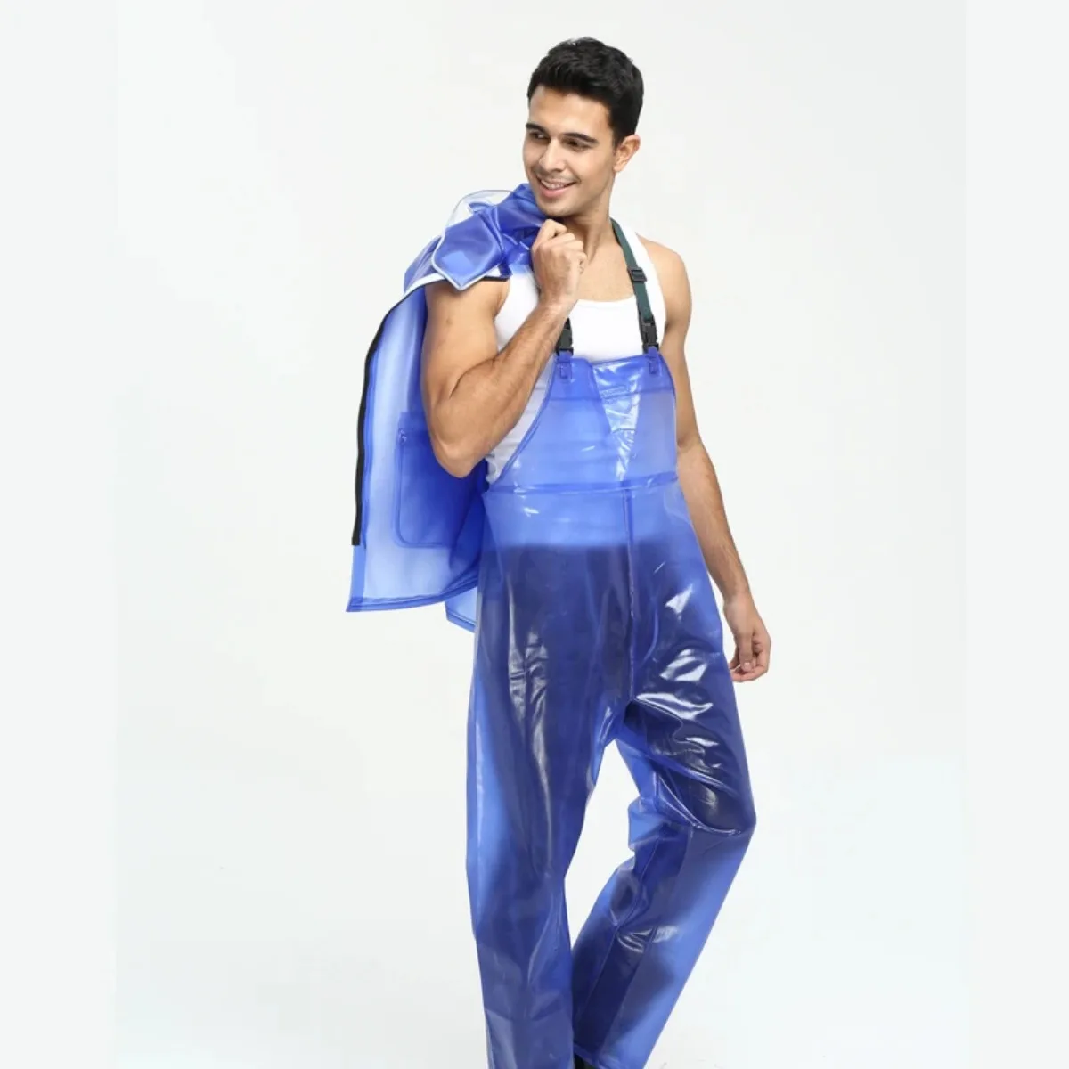 Men Raincoat Jacket Waterproof Transparent PVC Thick Rain Pants Wet Weather Gear