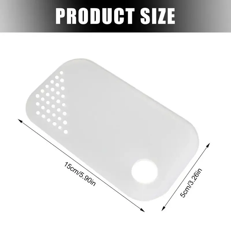This mini cutting board is designed for outdoor camping and food preparation. Made from durable plastic, it features a unique filter hole for easy drainage and a non-slip surface, making it ideal for chopping vegetables and fruits.