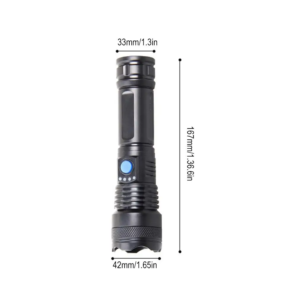This compact and versatile telescopic zoom flashlight is perfect for outdoor activities, emergencies, and everyday use. With a built-in 800mAh rechargeable battery, it offers reliable illumination in a small and portable design, making it easy to carry wherever you go.