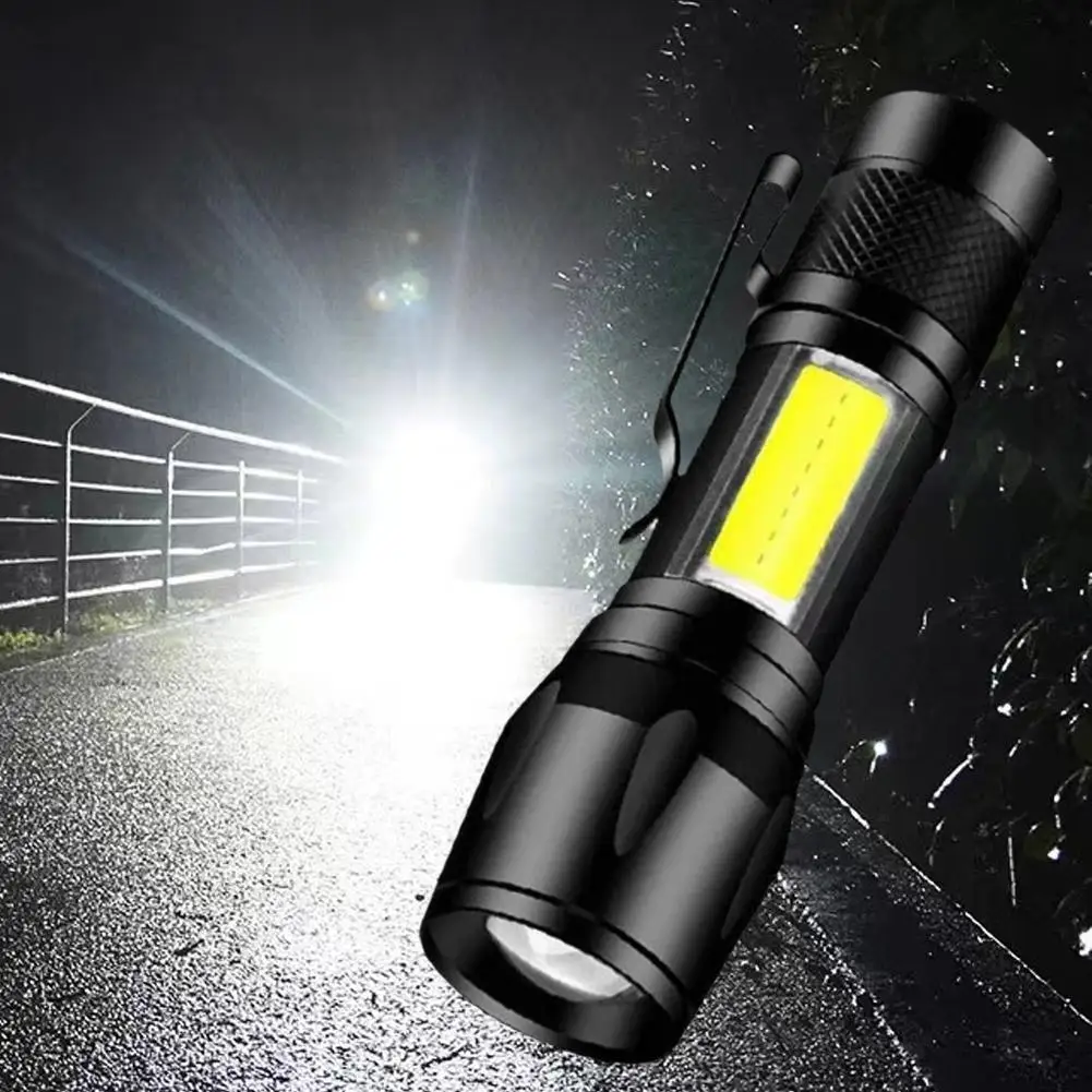 Mini LED Rechargeable Flashlight COB XPE Zoomable Torch 800mAh Battery
