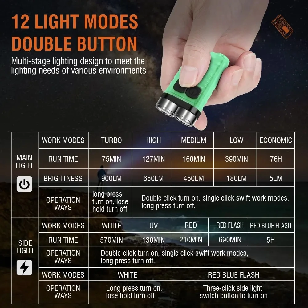 • Practicality: The flashlight offers multiple light modes, including a purple light for identifying currency and documents, with a maximum brightness of 400 lumens.