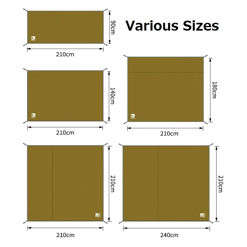 This Multi Size Camping Tent Tarp is an ultralight ground sheet made from 210D Oxford material, designed to be waterproof and suitable for various outdoor activities such as camping, picnics, and beach outings. Its compact size makes it easy to carry, and it provides excellent protection against moisture and wear.