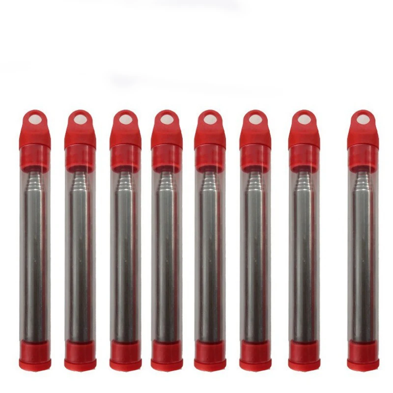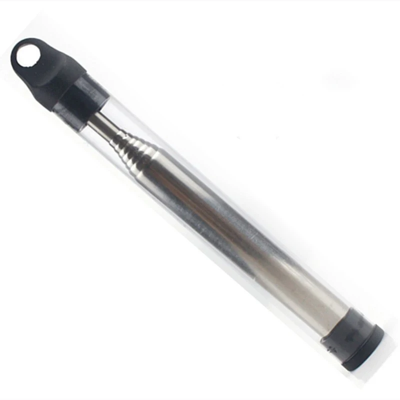 This stainless steel fire blowing tube is a compact and efficient tool designed for camping and outdoor fire-making. Its retractable design allows for easy portability, making it an essential item for outdoor enthusiasts.