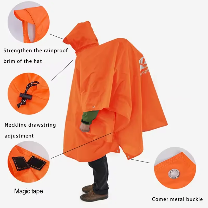 This 3-in-1 outdoor raincoat is designed for versatility and protection against the elements. It features a hood and long sleeves, making it suitable for various outdoor activities such as hiking, camping, and motorcycle riding.
