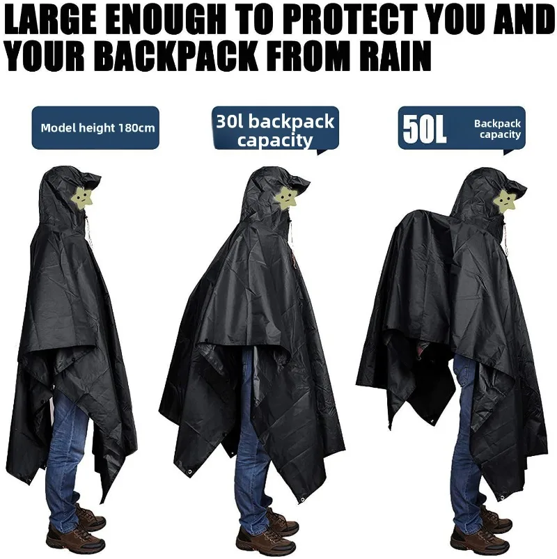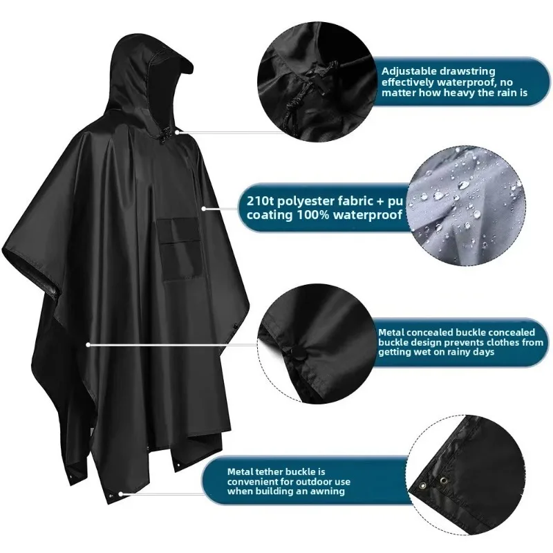Outdoor 3in1 Hooded Waterproof Military Raincoat Poncho for Camping Hiking