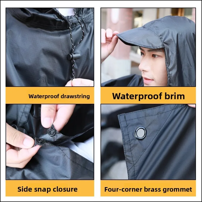 This 3 in 1 Military Hooded Waterproof Poncho is designed for outdoor enthusiasts. Made from high-quality waterproof ripstop nylon, it is lightweight yet durable, making it perfect for camping, hiking, and motorcycle travel. This versatile poncho can be used as a raincoat, emergency shelter, or ground sheet, providing protection from the elements.
