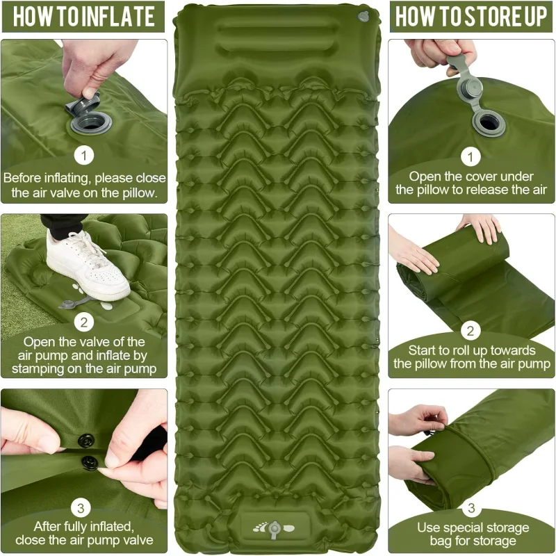 Experience comfort while camping with our ultralight outdoor air mattress, designed for easy inflation and maximum relaxation. This thickened air cushion features built-in pillows and a convenient built-in air pump, making it perfect for hiking and picnics.