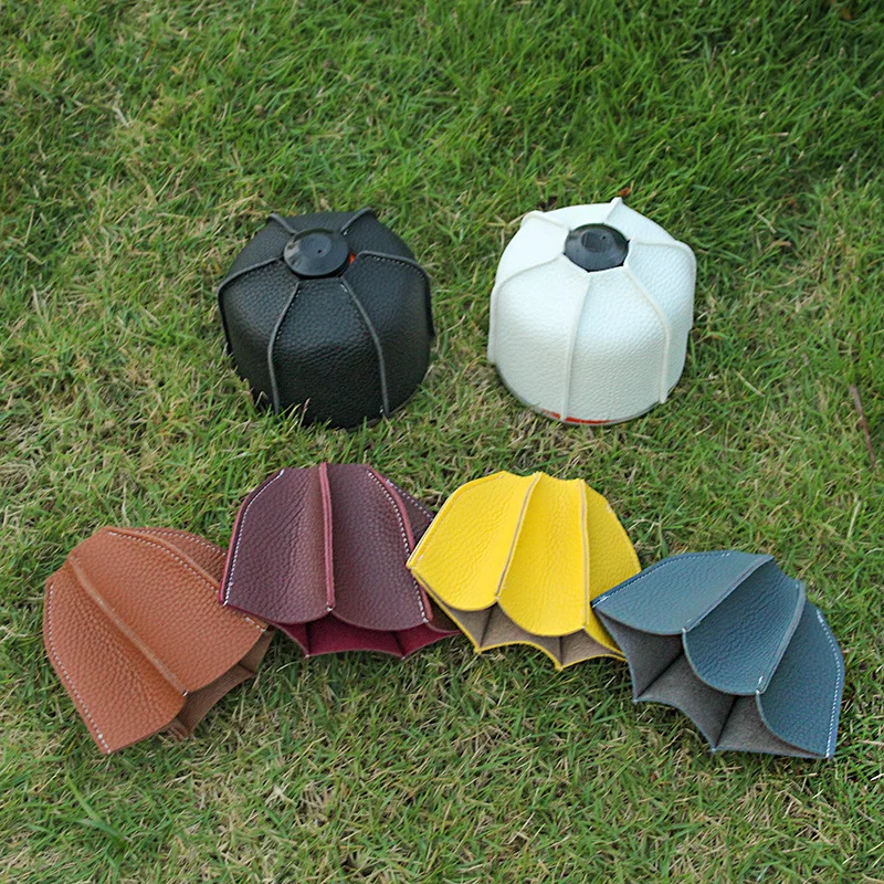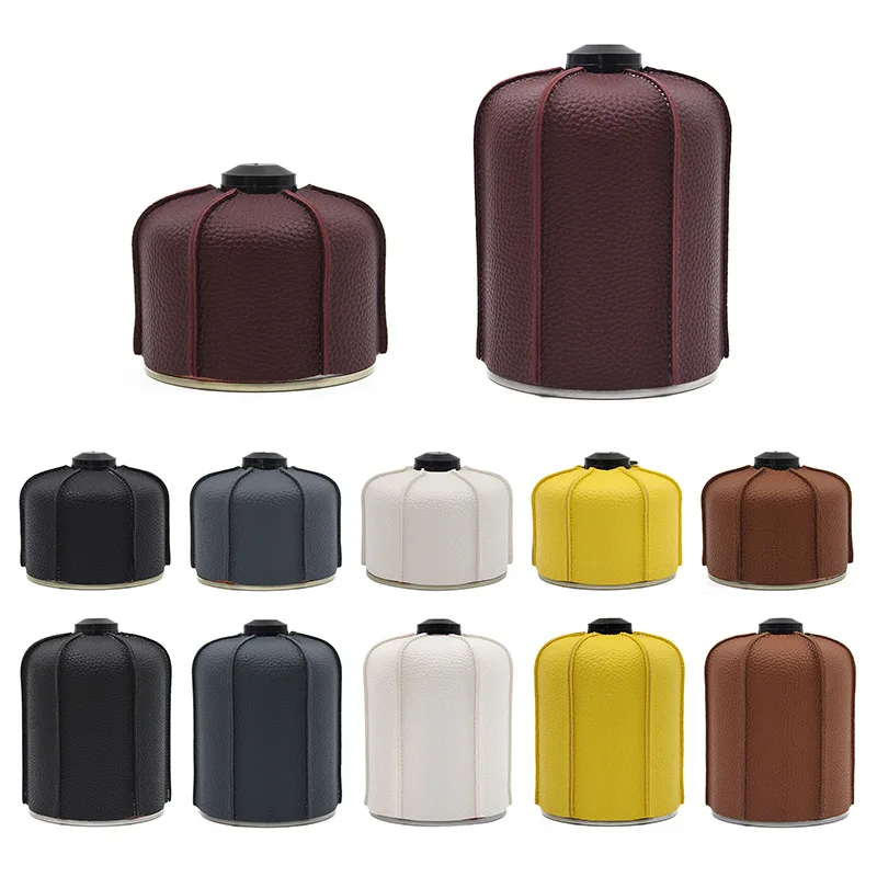 Outdoor Camping Flat Gas Canister Leather Cover Protective Cover