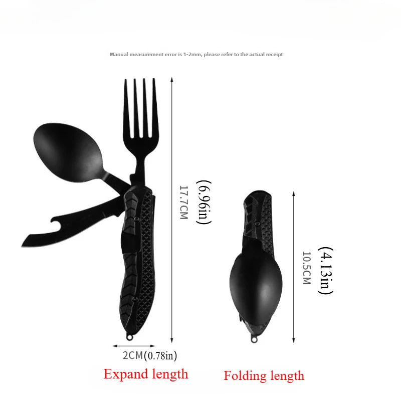 The Outdoor Camping Portable Stainless Steel Foldable Spoon Fork Knife Bottle Opener Set is a must-have multitool for outdoor enthusiasts. This compact and versatile cutlery set is perfect for camping, hiking, and home use, providing all the essential utensils in one convenient package.